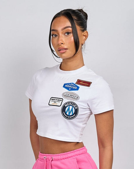 Womens White OG Badge Cropped Baby Tshirt